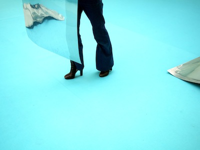 Bleu. Bleu à la fois intense, léger et lumineux. Bleu qui dissout les frontières entre le plateau et les gradins, bleu qui invite à le gouter, une fois ôtées les chaussures, à travers ses appuis, comme une sensation physique irriguant le corps jusqu’au lâcher prise. Bleu où plonger et se fondre pour mieux accueillir les propositions subtiles d’Antonija Livingstone et Nadia Lauro.