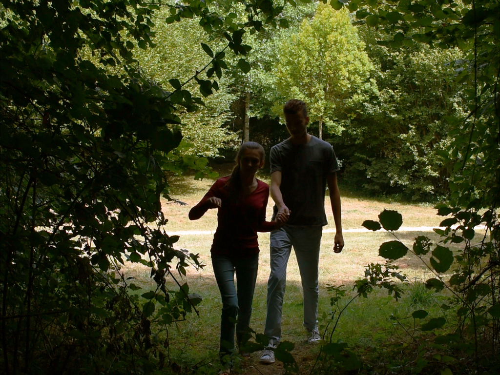 Le Parc ouvre sa première partie avec un point de départ similaire : en place d’un quadragénaire promenant son chien, c’est un couple d’adolescents dont on suit la déambulation à l’intérieur d’un grand parc. Leur traversée du lieu les amène à inventer une première chorégraphie, celle d’un rapprochement mutuel autour de leur amour naissant. Le cadre qu’ils investissent les confronte à une multitude de corps étrangers dont la simple présence les renvoie à leur propre mouvement et les invite à se déployer, à éprouver le lieu en même temps que leurs sentiments. L’idée que la séduction s’exprime dans la capacité de chacun des membres du couple à faire exister son corps dans l’espace se révèle être d’une grande justesse, et donne lieu à l’une des plus belles scènes et à l’un des plus beaux plans du film (qui n’en manque pas) : la jeune fille, dont l’on découvre au détour d’un dialogue et avec une authentique photo à l’appui qu’elle a pratiqué la gymnastique durant des années, s’éloigne du tronc d’arbre contre lequel elle s’était adossée pour faire une démonstration de ses talents au jeune homme, en s’appuyant sur les mains pour se tenir en équilibre et déplier ses jambes en l’air. Ce geste à priori insignifiant fabrique une image emprunte d’une douce étrangeté et d’un érotisme fou, et incarne pleinement l’idée que le rapprochement entre deux individus dépends littéralement de l’espace qu’ils ménagent autour d’eux pour offrir à l’autre une chorégraphie singulière, où chaque geste compte parce qu’il participe de l’élan amoureux et lui donne une forme.