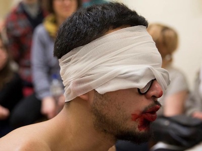 Les relations spatiales enfin, avec tout ce qui les informe de codes culturels et sociaux, et le corps du performer comme liant, médium et conducteur qui inscrit en creux une chorégraphie de la circulation des spectateurs, dans Go Climbing.