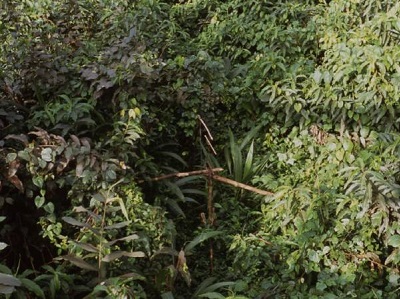 Différents aspects temporels sont ainsi suggérés à l’occasion de scènes qui convoquent essentiellement dans des gestes simples une activité aussi précaire que précise (un poseur de pièges, des ouvriers du sable, un sorcier, une planteuse de cacao, des chercheurs d’or, etc.). Le film est à l’écoute, en observation délicate, bien que le rideau de l’abondante frondaison fasse parfois écran. C’est d’ailleurs une des opérations continues du film, quelle que soit l’activité filmée : un protagoniste essaie de dégager le champ de l’épais feuillage à la machette (l’arbre est toutefois coupé à la tronçonneuse). Ces feuilles sont toujours susceptibles de faire écran, il s’agit notamment de former une échancrure qui permet de poursuivre. La trame du feuillage n’a étonnamment pas la plasticité qu’elle sait atteindre dans les expériences filmiques contemporaines parmi les plus convaincantes, mais on sent que le film ne cherche pas cette aventure esthétique, que sa proposition est autre.