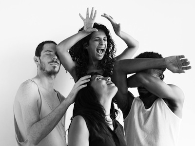 Quand les mots reviennent, ils sont scandés tels des mantras, des louanges ou des incitations. Parfois quelque chose d’insondable se laisse deviner sous les présences survoltées, carnavalesques. Portée par un sur-investissement physique, la nouvelle création de Volmir Cordeiro multiplie les énigmes et propose un objet chorégraphique à l’image de ces œufs que manipulent Isabela Santana et Marcela Santander : tout est dedans, et portant la surface se renferme sur elle-même.