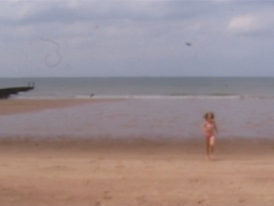 Mais cette décision d’en faire, pour ainsi dire, le moins possible, pour que quelque chose advienne, que la réalisatrice provoque sans pouvoir le contrôler vraiment, reste un acte de cinéma, qui ici est particulièrement profond et cohérent. Venue sur cette plage, quelques années auparavant, disperser au vent les cendres de sa mère défunte, Frédérique Devillez donne une dimension nouvelle à une relation familiale dont nous apprenons par ailleurs qu’elle était vécue douloureusement. Le matériel de tournage utilisé, sensible à la poussière et à toutes sortes d’impureté, au point que les images qu’il produit en sont marquées de manière définitive et irréversible, est sans conteste le médium qui, dans l’économie du film, pouvait capter quelque chose de cette présence absence dont Enfants, poussière veut retenir une manifestation, la plus mince soit-elle. Une manière simple et évidente de rappeler qu’un lien subsiste avec ceux qui, pour nous avoir quitté, n’en continuent pas moins d’impressionner nos jours, et qu’un des lieux du cinéma est de nous permettre d’en témoigner auprès de notre entourage.