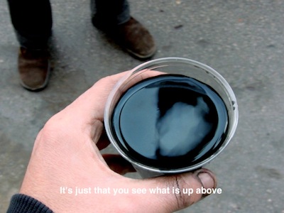 La résonance avec le film d’Ismaïl Bahri est presque trop évidente, pour qui la fragmentation est moins un constat initial que le résultat d’un processus. Orientations est une déambulation urbaine, filmée en plan séquence, et guidée par un dispositif où se conjuguent clairvoyance et aveuglement. La caméra focalise sur un verre d’encre noire. La recherche conjointe de la bonne distance et de la juste position permet à la caméra de capter des images de la ville qui s’impriment progressivement sur la surface opaque pour disparaître aussitôt. Ismaïl Bahri montre, en réinventant un procédé photographique, que pour accueillir ce qui vient, nous devons y être disposés. La prise de vue nous engage, elle nous met en acte et nous travaille au plus intime de nous-mêmes.