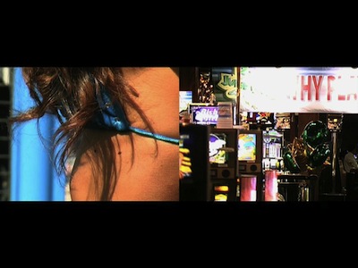 Si le film se donne comme une incorporation de matériaux hétérogènes, le corps semble être son motif privilégié, quand bien même il ne figurerait pas parmi les questions programmatiques préalables à l'enclenchement du tournage. Ceci est particulièrement évident dans Who Chooseth Me, qui est une recherche sur l'inscription possible d'une comédie de Shakespeare — Le marchand de Venise — dans une Amérique contemporaine, entre Las Vegas et Venice. Les images de ce film, qui s'est construit essentiellement au tournage, sont celles d'une réalité perçue avec le texte de Shakespeare, qui pose très directement la question de l'incarnation, notamment à travers l'épisode de la livre de chair mise en gage par Antonio auprès de Shylock. Les nombreux zooms, les détails sur les parties des corps filmés témoignent de la manière qu'a Pierre Moignard de se tourner vers son sujet, et expriment d'une certaine façon la relation du peintre à son modèle. Holyland Experience donne à voir cette relation comme telle, dans cette scène qui revient plusieurs fois, où une jeune femme, qui figure Inger dans le récit de Johannes, marche sur une coursive en direction de la caméra. Une sensualité particulière se dégage de ce mouvement, cette sensualité qui parcourt tout Holyland Experience et qui est exacerbée dans Who Chooseth Me, film à la composition complexe - où les cadrages tendent à saisir les choses comme une abstraction - faite à partir de plusieurs états du corps qui toujours entrent en résonance avec le texte et les images qu'il éveille dans notre attention. Les films de Pierre Moignard s'inscrivent dans le sillon de Manet, qui pensait l'art comme écriture de la vie. C'est par elle que le film trouve un rythme et une pulsation qui lui est propre. C'est une attention au contemporain, qui seul est important, lieu unique d'une épiphanie possible qu'il appartient à l'art de restituer : les corps, entre sensualité et abandon, offerts à la caméra ou attrapés par elle, commecette Blanche Neige au visage embaumé qui semble, quand elle surgit dans le film, ouvrir en lui un autre régime de visibilité et de manifestation.
