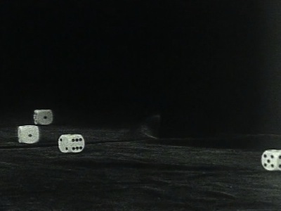 Pour variés qu'ils puissent être, les films de Jean-Pierre Bertrand semblent tous se donner comme la vision d'un geste ou d'un mouvement qui se rejoue lui-même sans fin, à l'image de cette paire de dés qui, jetés devant un miroir, se démultiplient avant de ne se figer, dans le cadre ou hors champ. Ce court film intitulé Playing Dice, qui relève, comme plusieurs travaux de Jean-Pierre Bertrand, du tourné-monté, donne à voir très concrètement de ce qui est engagé dans chacun des films projetés, une manière de creuser ce qui se trame dans l'image en la reconfigurant à chaque instant. Ainsi, ce n'est pas une combinaison particulière et hasardeuse du jet de dès, laquelle serait de toute façon oblitérée par le dispositif du miroir — qui ne se perçoit pas d'emblée et qui reconduit le mouvement des cubes blancs à un jeu de points noirs, d'ombres et de lumières — mais le sentiment que le film a rassemblé la matière suffisante pour restituer la vision qui le conduit. L'enjeu est aussi de cet ordre dans Balance Ball, qui donne à voir une balle en plastique lâchée en haut du cadre, et qui se stabilise après plusieurs rebonds, sa place dans l'image se tenant toujours dans une sorte d'indécision. Sitôt l'équilibre trouvé, le geste est relancé. Le film est l'image d'une répétition, et c'est peut-être ce qui distingue ce médium des autres moyens plastiques, la peinture notamment, avec lesquels Jean-Pierre Bertrand peut travailler.