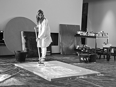 D’approcher le sidéral, les grands aplats de matière de couleur ocre, blanche, noire, rougeoyante nous sidèrent en retour. Nous voyons les paysages auroraux que personne n’a jamais pu capter, nous sommes contemporains du découplage entre matière et rayonnement lumineux, de la naissance des galaxies. L’émergence des premières nucléosynthèses, le mouvement d’apparition de la vie surgit au détour de la toile ovoïde « Genèse ». Des phénomènes de calcination, des lueurs spectrales traversent les œuvres qui se jouent de l’équilibre, laissant fulgurer à la fois les puissances du chaos et les structures ordonnées, dans un éternel combat de l’harmonie et de l’anarchie.