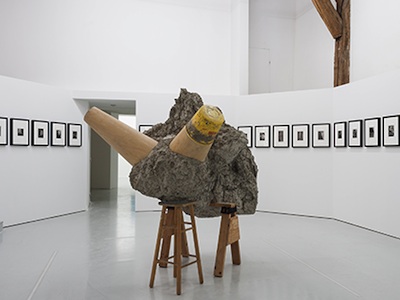 Unique œuvre commune aux deux expositions, Untitled (Ha,ha...) de Julien Bismuth, s’inspire de ce dernier opus pour ponctuer le parcours et l’élargir au delà des murs des centres d’art à la ville et au territoire. Car ses chorégraphies figées sur des feuilles A3 ont vocation à circuler, à être emportées par les visiteurs. Les exclamations du singe Bosse-de-Nage pointées dans ces différentes mises en scènes du texte de Jarry entrent en résonance avec ce mot impossible qui inaugure le roman Finnegans Wake et représente la voix de Dieu. Lecteur infatigable de James Joyce, William Anastasi en a fait la substance même de ses tableaux hauts en couleurs, qui s’attachent à restituer la peinture d’un son, Bababad (nn) et Bababad (o). L’artiste américain, l’un des pionniers de l’art conceptuel et minimal, a par ailleurs consacré douze années de sa vie à une étude comparée des œuvres de Jarry, de Joyce et de Duchamp. La scénographie de l’exposition nous plonge littéralement entre les pages de cette entreprise à la fois fantasque et terriblement érudite. Quelques 900 feuillets manuscrits remplissent des murs temporaires qui définissent un espace labyrinthique, étonnement strié où les rapprochements les plus improbables deviennent possibles. Cette écriture fine et nerveuse se met à danser au souffle expiatoire d’une chambre à air qui se dégonfle, objet sonore minimaliste, Sound Object (Deflated Tire, 1964-2015) où William Anastasi convoque une autre figure chère à Jarry, la boucle visuelle et temporelle.