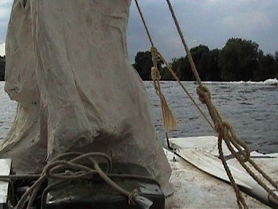 C’est le sens même du mot extase que de désigner un tel mouvement, ce transport qui met un être en dehors de son habituel socle d’existence. Extase en aval est à la fois la sortie hors d’elle même de la Victoire de Samothrace, que l’on peut apercevoir dans La sprezzatura, et une traversée qui suit le cours de la Seine entre Paris et Le Havre. Pour mettre en œuvre ce transport de manière cohérente avec le sens de la statue dupliquée, Beat Lippert a construit un radeau à moteur, sur lequel la Victoire a retrouvé sa dimension de figure de proue. C’est elle en un sens qui conduit la navigation et va à la rencontre des usagers du fleuve, pour atteindre finalement les côtes de Normandie. En envoyant la statue au grand large, Beat Lippert lui fait reconquérir une dimension d’elle-même qu’elle semblait avoir définitivement perdue.