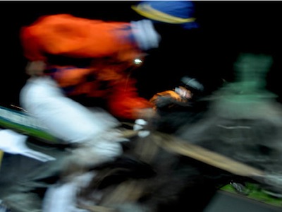 Le premier plan découvre, par un lent travelling vertical, des arbres dont les branches sombres se détachent sur fond de nuit, puis une route qui passe devant l'hippodrome de Vincennes. Le champ de course draine une lumière électrique dans ce paysage lunaire, traversé par des voitures qui emportent dans la nuit leur indifférence. Cette approche, entre peinture de paysage et cinéma documentaire, dit exactement le fil que Nocturnes va s'efforcer de tisser entre deux registres d'images, les unes plastiques, particulièrement belles et travaillées, les autres arrachées au réel, faites autant que possible, dans un environnement qui semble, avec ses chaises en plastique et ses lumières blafardes, être là pour entraver toute possibilité filmique. Et pourtant quelque chose a lieu, précisément du côté du cinéma.