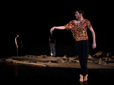 Un lourd rideau obstrue la cage de la scène. Emmanuelle Huynh choisit d’ancrer la danse entre ses plis, dans un mouvement suspendu, sans cesse recommencé, d’ouverture. Tôzai! (d’Est en Ouest) – l’amplitude est énorme, a vocation à embrasser le monde. Le cri ritualisé qui lance toute représentation de Bunraku affirme littéralement cette volonté. La chorégraphe s’est inspirée de certains éléments du théâtre traditionnel japonais. C’était aussi pour elle une autre manière de revisiter une question qui nourrissait déjà son premier travail en solo, Mùa, en 1995.