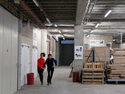 Je désire y rester encore un moment. Le Palais de Tokyo, avec ses immenses espaces en friche, est soudainement devenu un endroit familier, empreint d’une douceur flottante, un lieu presque chaleureux, agité ça et là par des courants d’énergie. Je viens de le découvrir autrement, les yeux fermés, j’ai entendu ses bruits, ses respirations, son souffle, j’ai pu emprunter ses cheminements souterrains, capter des bribes de discussions, m’imprégner ses fragrances de béton brut, tâtonner sur des pentes légères ou des marches métalliques. J’avais les yeux fermés et Malena Beer dansait autour de moi, m’entrainant dans l’exploration insensée de Un-visible.